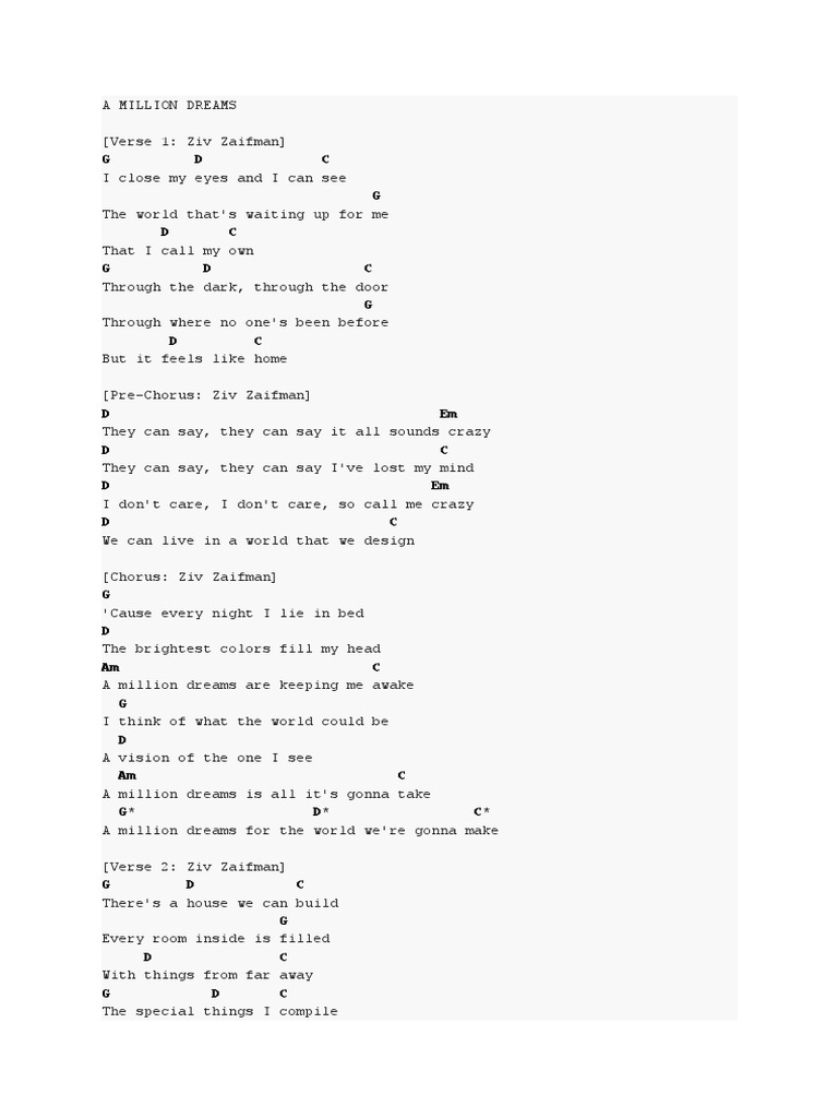 Lirik Lagu A Million Dreams Ziv Zaifman Pdf